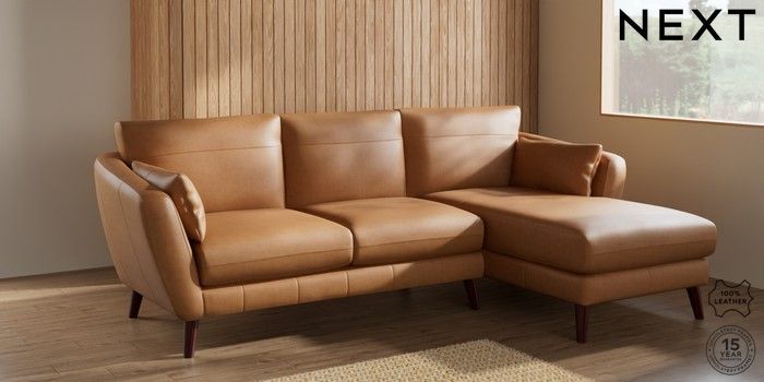6.12.1 Buy Orlo Leather Medium Sofa Chaise - Right Hand Antiqued Leather Light Tan Brown Retro Tapered - Dark Brown from the Next UK online shop Click here to use our accessible website