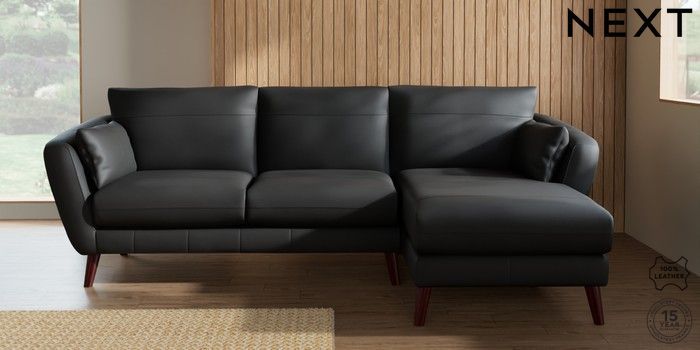 7.0.3 Buy Orlo Leather Medium Sofa Chaise - Right Hand Columbia Black Retro Tapered - Dark Brown from the Next UK online shop Click here to use our accessible website