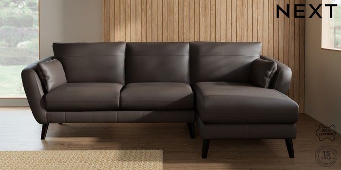 7.0.3 Buy Orlo Leather Medium Sofa Chaise - Right Hand Columbia Dark Brown Retro Tapered - Dark from the Next UK online shop Click here to use our accessible website