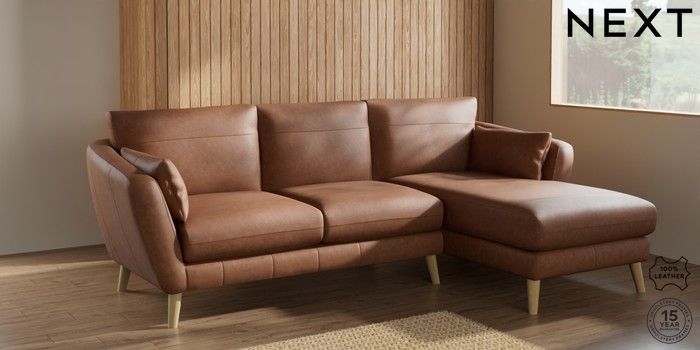 6.12.1 Buy Orlo Leather Medium Sofa Chaise - Right Hand Rustic Leather Light Brown Retro Tapered - Light from the Next UK online shop Click here to use our accessible website