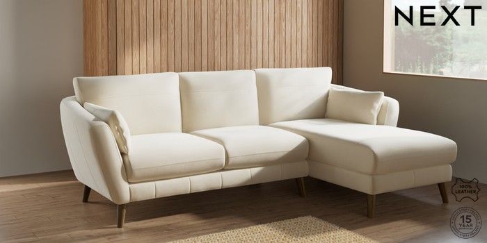 6.12.1 Buy Orlo Leather Medium Sofa Chaise - Right Hand Turin Leather Cream Retro Tapered - Mid from the Next UK online shop Click here to use our accessible website