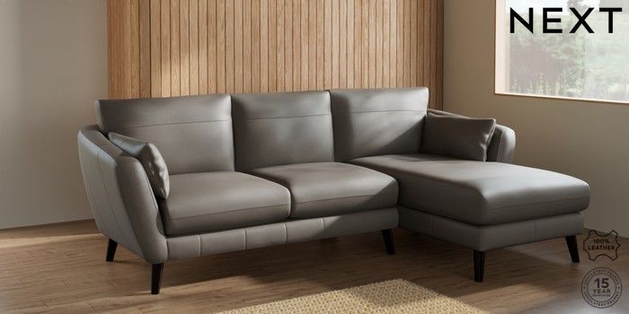 6.12.1 Buy Orlo Leather Medium Sofa Chaise - Right Hand Turin Leather French Grey Retro Tapered - Dark from the Next UK online shop Click here to use our accessible website