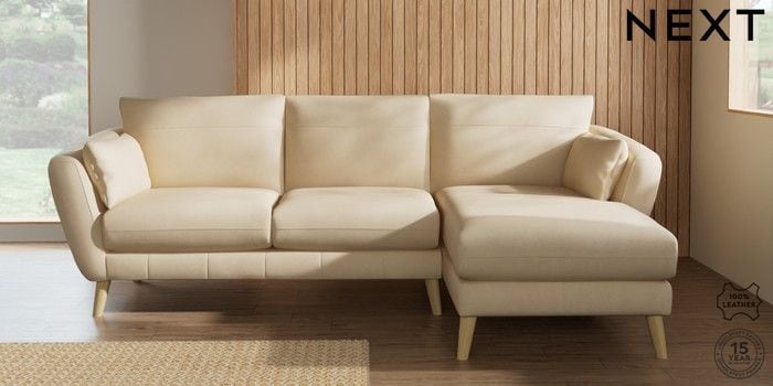 7.0.3 Buy Orlo Leather Medium Sofa Chaise - Right Hand Turin Leather Light Natural Retro Tapered - Light from the Next UK online shop Click here to use our accessible website