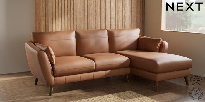 6.12.1 Buy Orlo Leather Medium Sofa Chaise - Right Hand Turin Leather Tan Brown Retro Tapered - Mid from the Next UK online shop Click here to use our accessible website