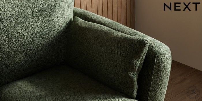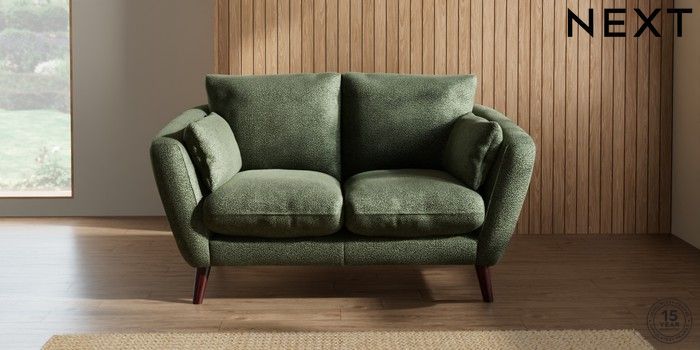6.12.1 Buy Orlo Relaxed Sit 2 Seater Small Sofa Boucle Chenille Dark Moss Green Retro Tapered - Dark Brown from the Next UK online shop Click here to use our accessible website
