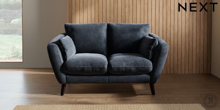 6.12.1 Buy Orlo Relaxed Sit 2 Seater Small Sofa Boucle Chenille Dark Slate Blue Retro Tapered - Dark from the Next UK online shop Click here to use our accessible website