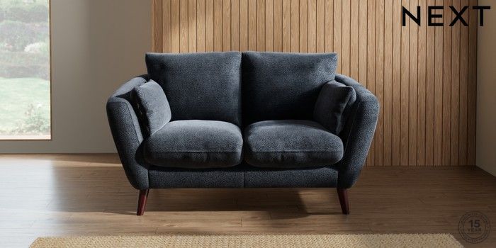 6.12.1 Buy Orlo Relaxed Sit 2 Seater Small Sofa Boucle Chenille Dark Slate Blue Retro Tapered - Dark Brown from the Next UK online shop Click here to use our accessible website