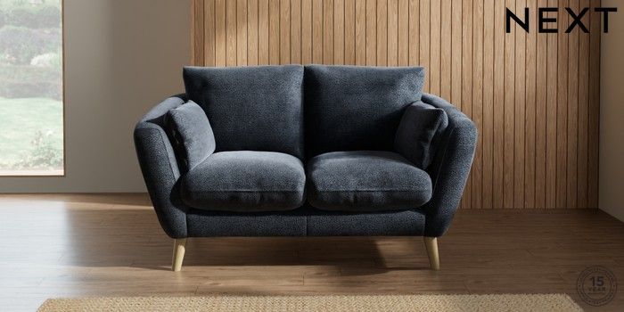 6.12.1 Buy Orlo Relaxed Sit 2 Seater Small Sofa Boucle Chenille Dark Slate Blue Retro Tapered - Light from the Next UK online shop Click here to use our accessible website
