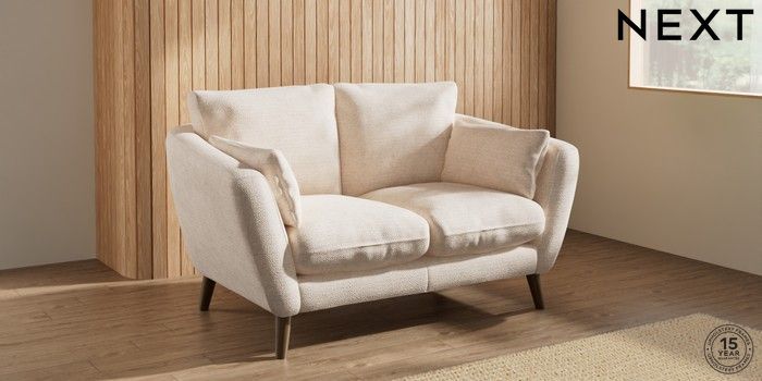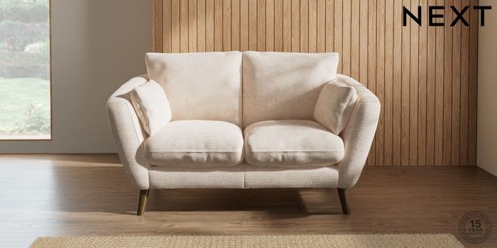 6.12.1 Buy Orlo Relaxed Sit 2 Seater Small Sofa Boucle Chenille Oyster Retro Tapered - Mid from the Next UK online shop Click here to use our accessible website