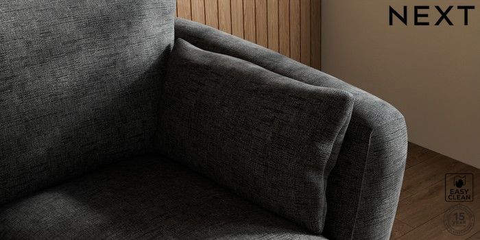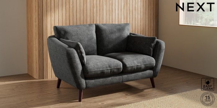 6.12.1 Buy Orlo Relaxed Sit 2 Seater Small Sofa Boucle Weave Easy Clean Charcoal Grey Retro Tapered - Dark Brown from the Next UK online shop Click here to use our accessible website