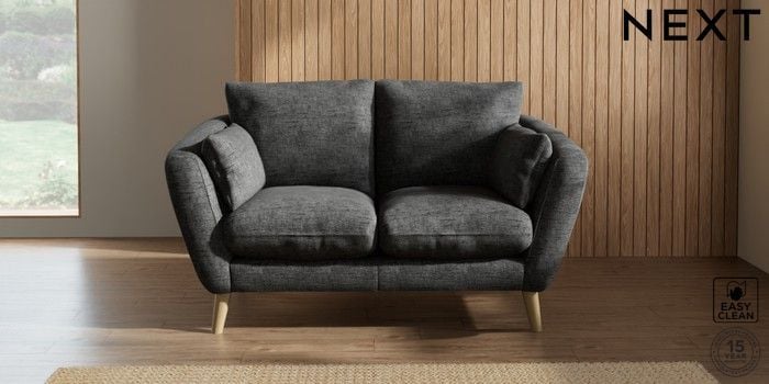 6.12.1 Buy Orlo Relaxed Sit 2 Seater Small Sofa Boucle Weave Easy Clean Charcoal Grey Retro Tapered - Light from the Next UK online shop Click here to use our accessible website