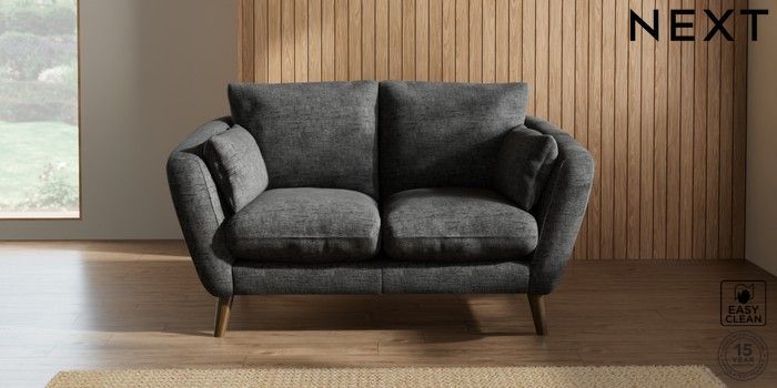 6.12.1 Buy Orlo Relaxed Sit 2 Seater Small Sofa Boucle Weave Easy Clean Charcoal Grey Retro Tapered - Mid from the Next UK online shop Click here to use our accessible website