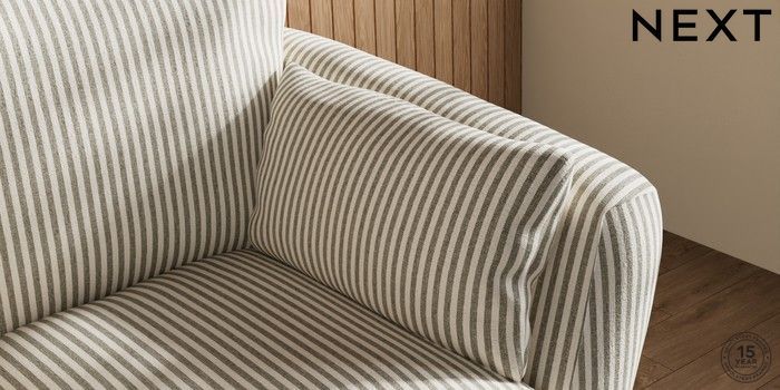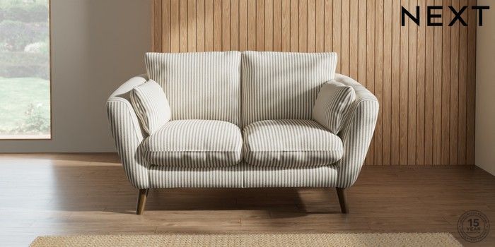 7.3.1 Buy Orlo Relaxed Sit 2 Seater Small Sofa Chenille Stripe Moss Green Retro Tapered - Mid from the Next UK online shop Click here to use our accessible website