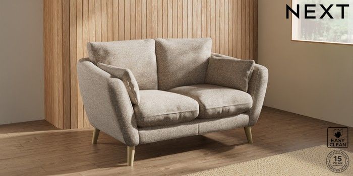 6.12.1 Buy Orlo Relaxed Sit 2 Seater Small Sofa Chunky Boucle Easy Clean Mid Natural Retro Tapered - Light from the Next UK online shop Click here to use our accessible website