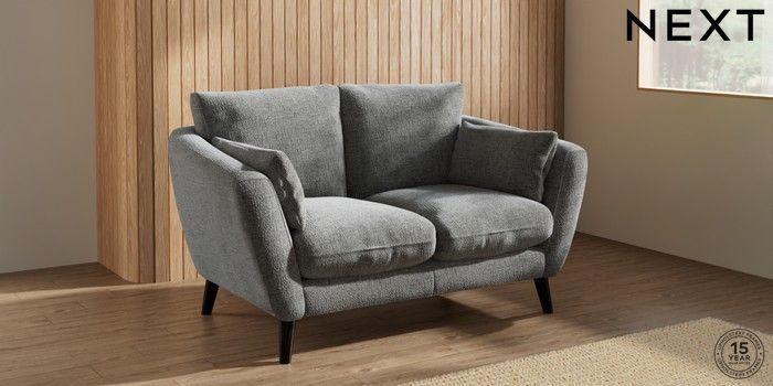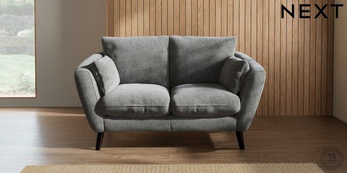 6.12.1 Buy Orlo Relaxed Sit 2 Seater Small Sofa Chunky Chenille Dark Grey Retro Tapered - Dark from the Next UK online shop Click here to use our accessible website