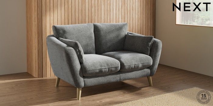 6.12.1 Buy Orlo Relaxed Sit 2 Seater Small Sofa Chunky Chenille Dark Grey Retro Tapered - Light from the Next UK online shop Click here to use our accessible website