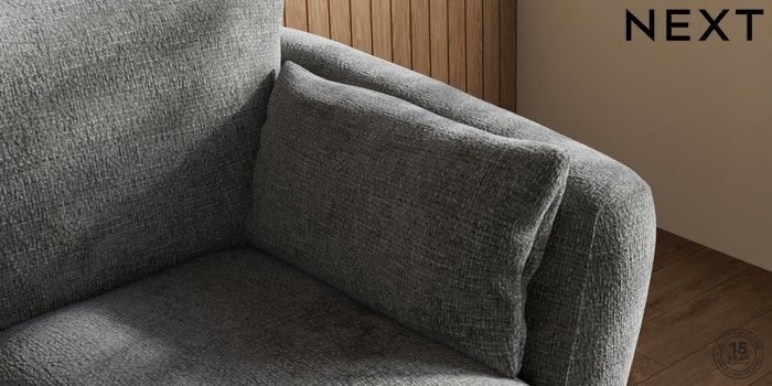 6.12.1 Buy Orlo Relaxed Sit 2 Seater Small Sofa Chunky Chenille Dark Grey Retro Tapered - Mid from the Next UK online shop Click here to use our accessible website