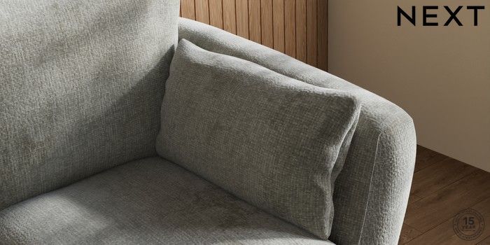 6.12.1 Buy Orlo Relaxed Sit 2 Seater Small Sofa Chunky Chenille Light Grey Retro Tapered - Mid from the Next UK online shop Click here to use our accessible website