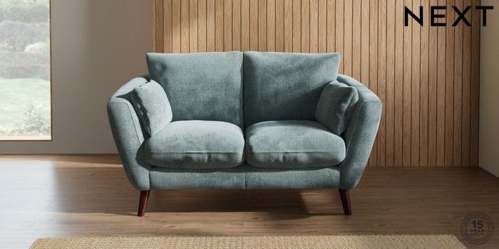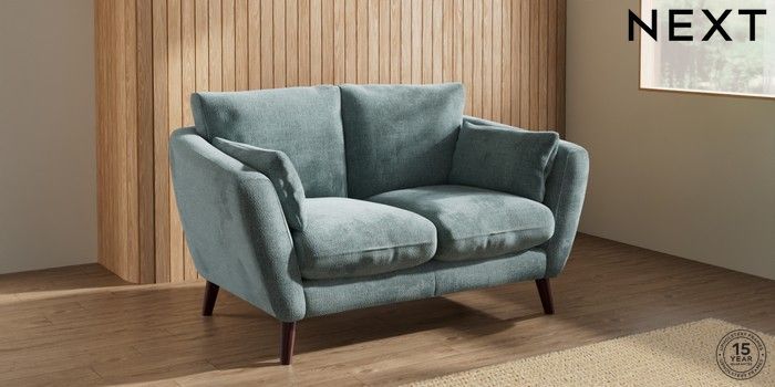 6.12.1 Buy Orlo Relaxed Sit 2 Seater Small Sofa Chunky Chenille Light Teal Green Retro Tapered - Dark Brown from the Next UK online shop Click here to use our accessible website