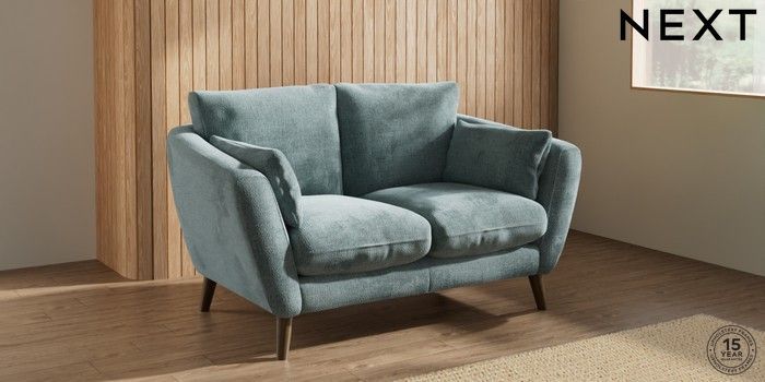 6.12.1 Buy Orlo Relaxed Sit 2 Seater Small Sofa Chunky Chenille Light Teal Green Retro Tapered - Mid from the Next UK online shop Click here to use our accessible website
