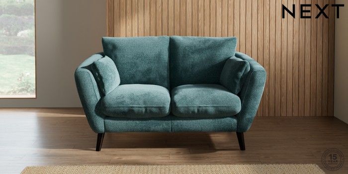 6.12.1 Buy Orlo Relaxed Sit 2 Seater Small Sofa Chunky Chenille Mid Teal Green Retro Tapered - Dark from the Next UK online shop Click here to use our accessible website