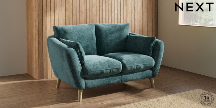 6.12.1 Buy Orlo Relaxed Sit 2 Seater Small Sofa Chunky Chenille Mid Teal Green Retro Tapered - Light from the Next UK online shop Click here to use our accessible website
