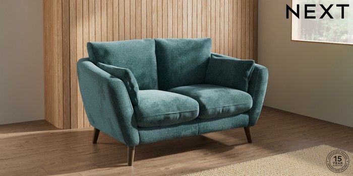 6.12.1 Buy Orlo Relaxed Sit 2 Seater Small Sofa Chunky Chenille Mid Teal Green Retro Tapered - Mid from the Next UK online shop Click here to use our accessible website