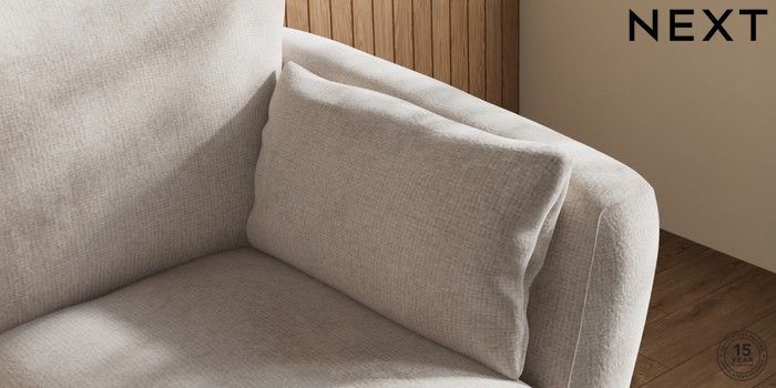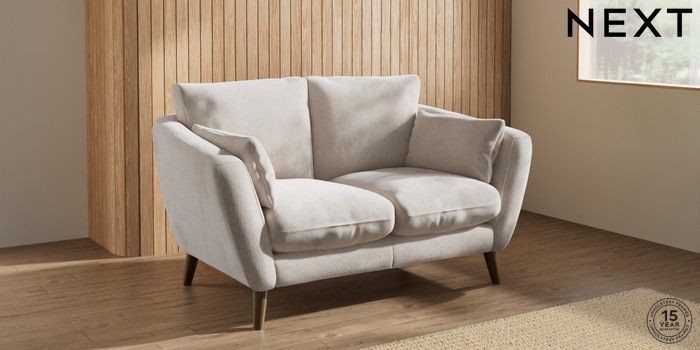 6.12.1 Buy Orlo Relaxed Sit 2 Seater Small Sofa Chunky Chenille Oyster Retro Tapered - Mid from the Next UK online shop Click here to use our accessible website