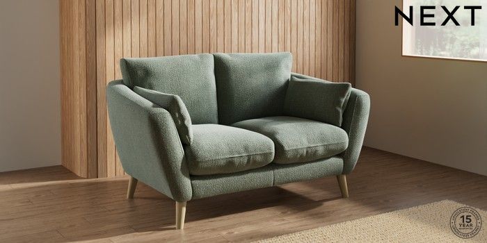 6.12.1 Buy Orlo Relaxed Sit 2 Seater Small Sofa Chunky Texture Mid Forest Green Retro Tapered - Light from the Next UK online shop Click here to use our accessible website