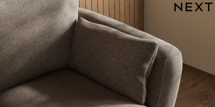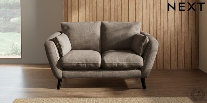 6.12.1 Buy Orlo Relaxed Sit 2 Seater Small Sofa Chunky Weave Dark Natural Retro Tapered - Dark from the Next UK online shop Click here to use our accessible website