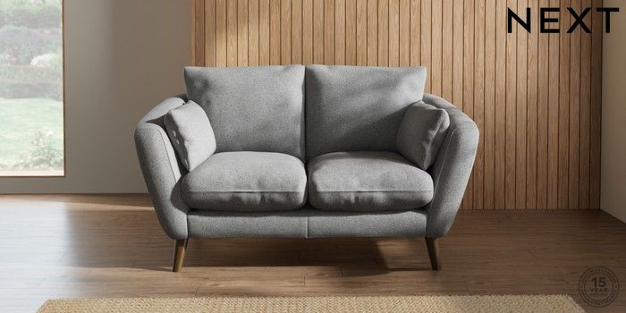 6.12.1 Buy Orlo Relaxed Sit 2 Seater Small Sofa Chunky Weave Mid Grey Retro Tapered - Mid from the Next UK online shop Click here to use our accessible website