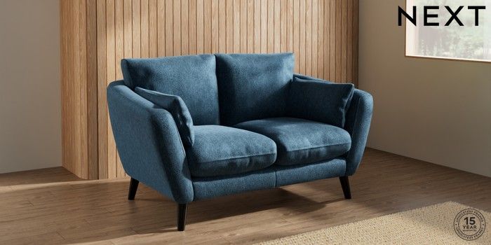 7.0.3 Buy Orlo Relaxed Sit 2 Seater Small Sofa Cotswold Chenille Dark Blue Retro Tapered - Dark from the Next UK online shop Click here to use our accessible website