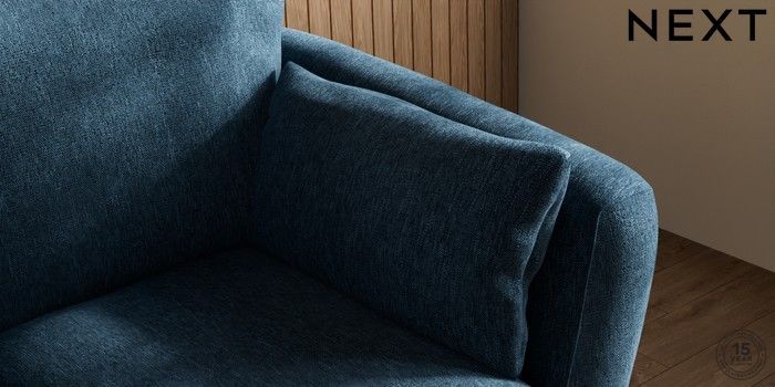 7.0.3 Buy Orlo Relaxed Sit 2 Seater Small Sofa Cotswold Chenille Dark Blue Retro Tapered - Dark Brown from the Next UK online shop Click here to use our accessible website