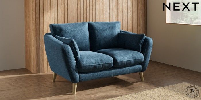 7.0.3 Buy Orlo Relaxed Sit 2 Seater Small Sofa Cotswold Chenille Dark Blue Retro Tapered - Light from the Next UK online shop Click here to use our accessible website