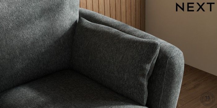 6.12.1 Buy Orlo Relaxed Sit 2 Seater Small Sofa Cotswold Chenille Dark Grey Retro Tapered - Dark Brown from the Next UK online shop Click here to use our accessible website
