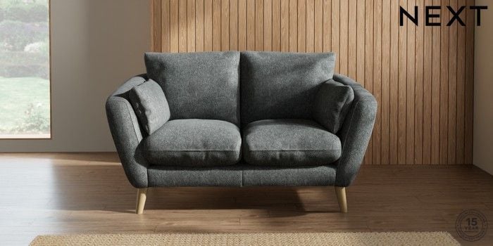 6.12.1 Buy Orlo Relaxed Sit 2 Seater Small Sofa Cotswold Chenille Dark Grey Retro Tapered - Light from the Next UK online shop Click here to use our accessible website
