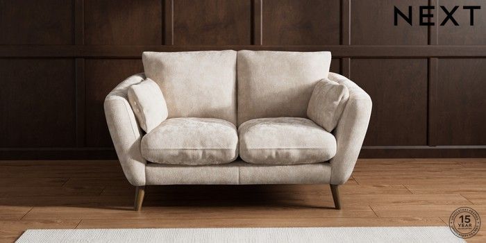 6.12.1 Buy Orlo Relaxed Sit 2 Seater Small Sofa Distressed Velour Mid Natural Retro Tapered - Mid from the Next UK online shop Click here to use our accessible website