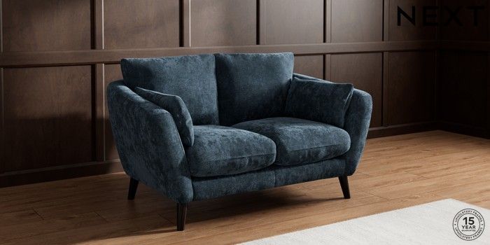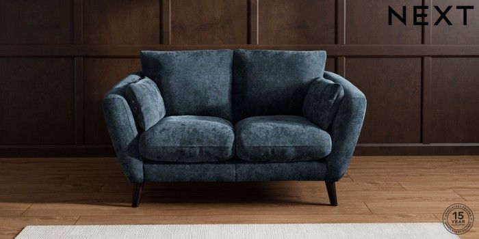 6.12.1 Buy Orlo Relaxed Sit 2 Seater Small Sofa Distressed Velour Midnight Blue Retro Tapered - Dark from the Next UK online shop Click here to use our accessible website