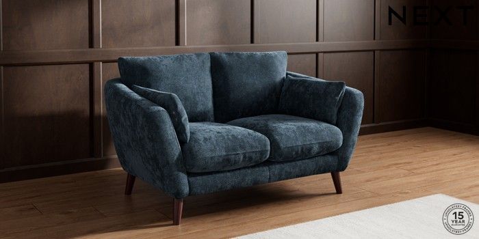 6.12.1 Buy Orlo Relaxed Sit 2 Seater Small Sofa Distressed Velour Midnight Blue Retro Tapered - Dark Brown from the Next UK online shop Click here to use our accessible website