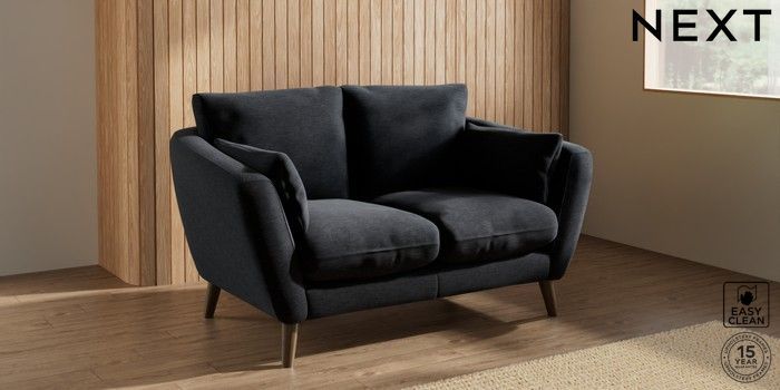 6.12.1 Buy Orlo Relaxed Sit 2 Seater Small Sofa Fine Chenille Easy Clean Black Retro Tapered - Mid from the Next UK online shop Click here to use our accessible website