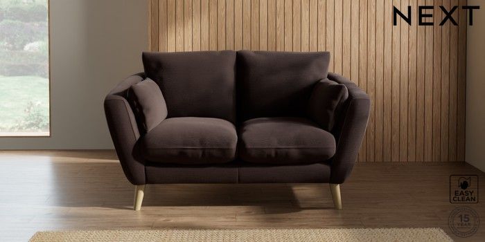 6.12.1 Buy Orlo Relaxed Sit 2 Seater Small Sofa Fine Chenille Easy Clean Chocolate Brown Retro Tapered - Light from the Next UK online shop Click here to use our accessible website