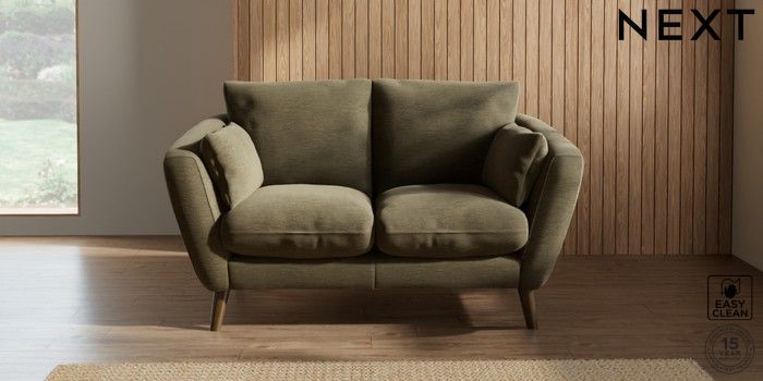 6.12.1 Buy Orlo Relaxed Sit 2 Seater Small Sofa Fine Chenille Easy Clean Dark Moss Green Retro Tapered - Mid from the Next UK online shop Click here to use our accessible website
