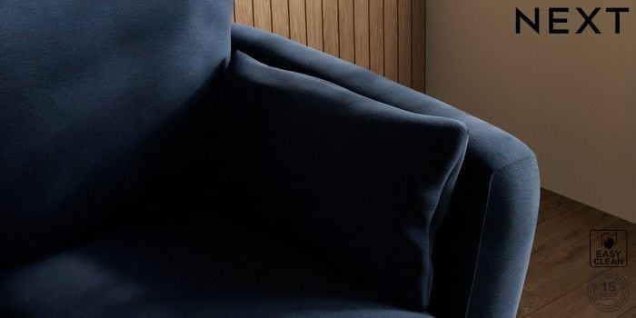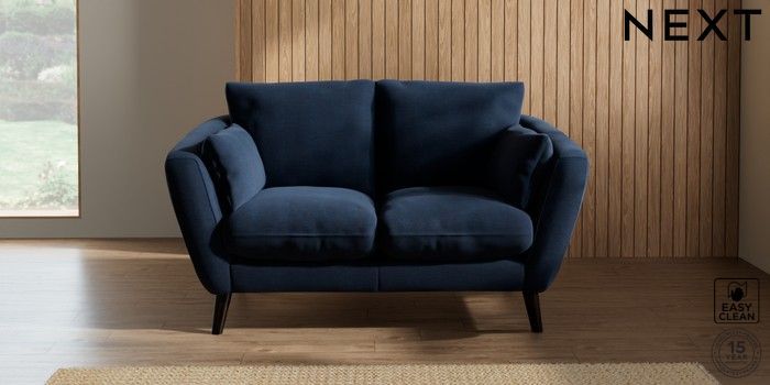 6.12.1 Buy Orlo Relaxed Sit 2 Seater Small Sofa Fine Chenille Easy Clean Dark Navy Blue Retro Tapered - Dark from the Next UK online shop Click here to use our accessible website