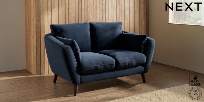 6.12.1 Buy Orlo Relaxed Sit 2 Seater Small Sofa Fine Chenille Easy Clean Dark Navy Blue Retro Tapered - Dark Brown from the Next UK online shop Click here to use our accessible website