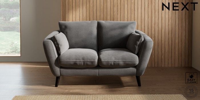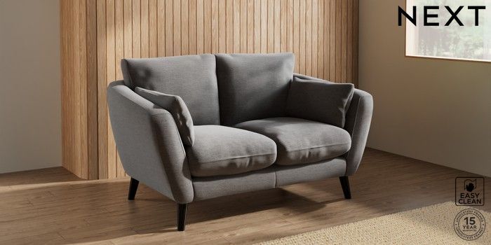 6.12.1 Buy Orlo Relaxed Sit 2 Seater Small Sofa Fine Chenille Easy Clean Dark Smoke Grey Retro Tapered - Dark from the Next UK online shop Click here to use our accessible website