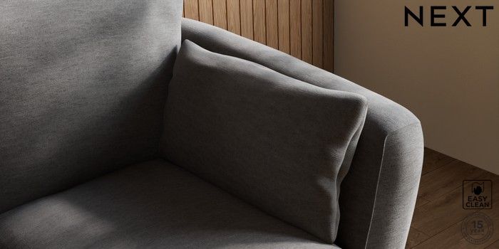6.12.1 Buy Orlo Relaxed Sit 2 Seater Small Sofa Fine Chenille Easy Clean Dark Smoke Grey Retro Tapered - Mid from the Next UK online shop Click here to use our accessible website