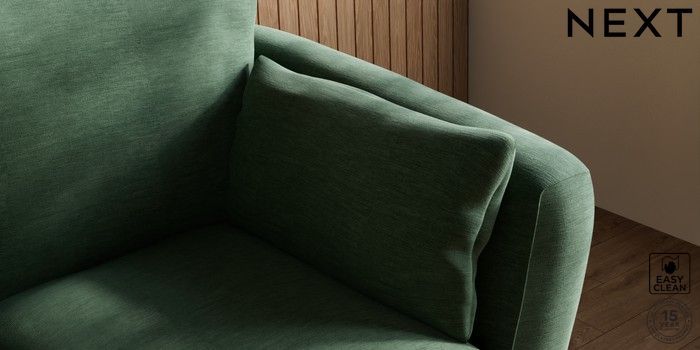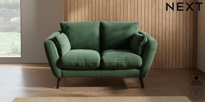 6.12.1 Buy Orlo Relaxed Sit 2 Seater Small Sofa Fine Chenille Easy Clean Mid Khaki Green Retro Tapered - Dark Brown from the Next UK online shop Click here to use our accessible website
