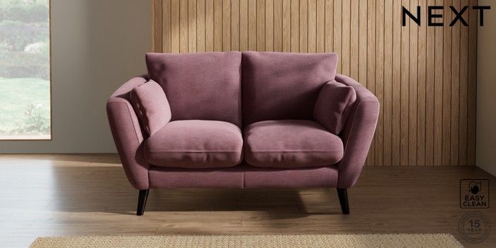 6.12.1 Buy Orlo Relaxed Sit 2 Seater Small Sofa Fine Chenille Easy Clean Mid Mulberry Purple Retro Tapered - Dark from the Next UK online shop Click here to use our accessible website