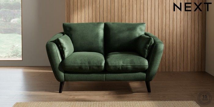 6.12.1 Buy Orlo Relaxed Sit 2 Seater Small Sofa Luxe Chenille Dark Green Retro Tapered - Dark from the Next UK online shop Click here to use our accessible website