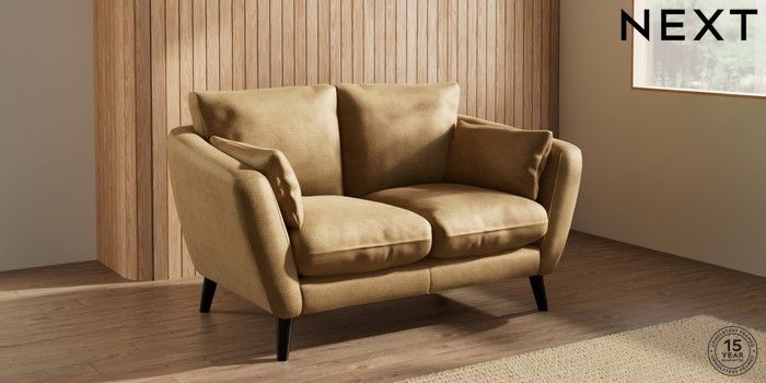 7.0.3 Buy Orlo Relaxed Sit 2 Seater Small Sofa Luxe Chenille Honey Yellow Retro Tapered - Dark from the Next UK online shop Click here to use our accessible website